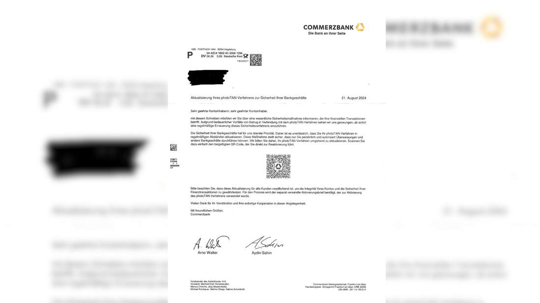Oszustwo, fałszywy list z Commerzbank