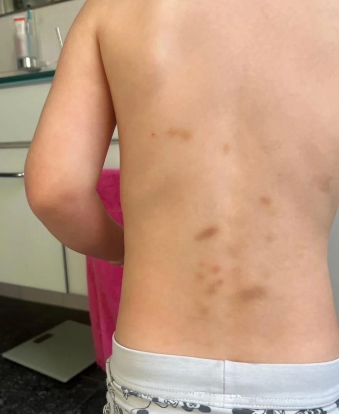 Siniaki na plecach chłopca z przedszkola