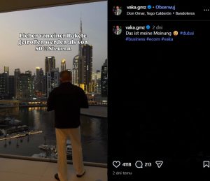 Gadimov stwierdził, że woli pozostać w Dubaju, mimo że miasto znajduje się w zasięgu działań rakietowych, niż po powrocie do Niemiec podlegać obciążeniu podatkowemu na poziomie około 50 procent.
